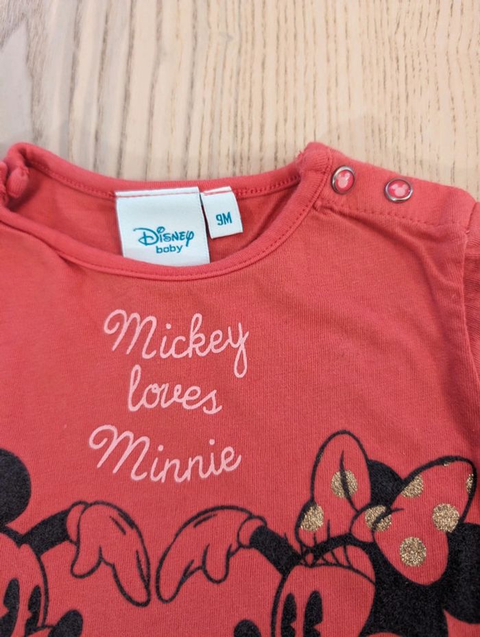 T-shirt manches longues Disney avec Mickey et Minnie en effet velours. Marque Disney Baby Taille 9mois. Très bon état. #tennyteb9mois