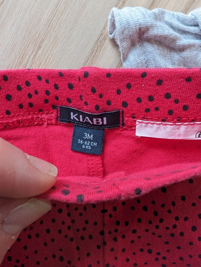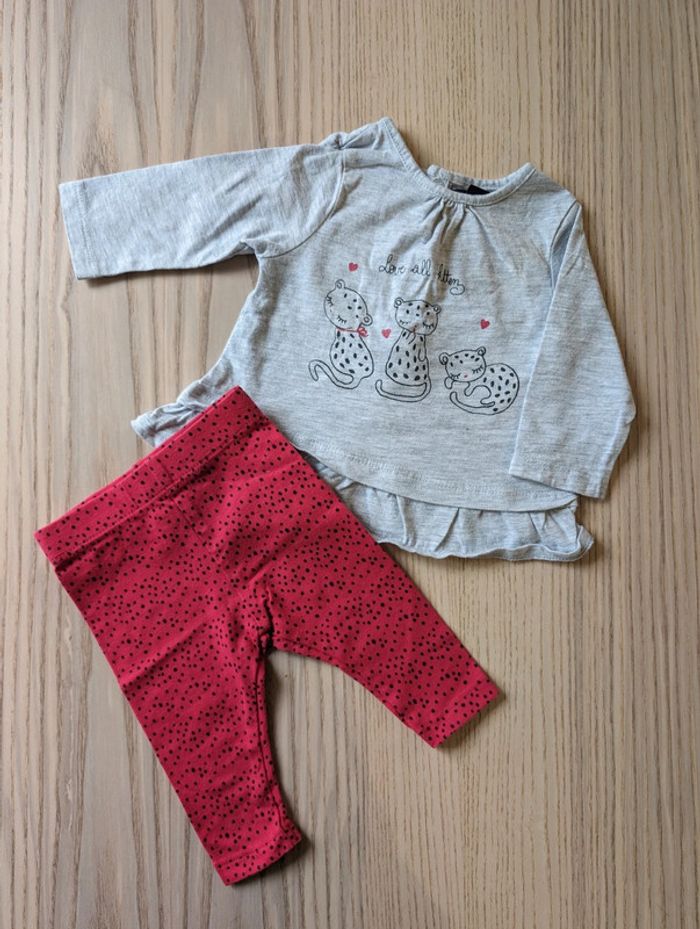 Ensemble legging et t-shirt manches longues. Marque Kiabi. Taille 3 mois / 56/62cm 6kg. Etat satisfaisant petite tâche jaunâtre sur le tee-shirt visible sur la dernière photo. #tennyteb3mois