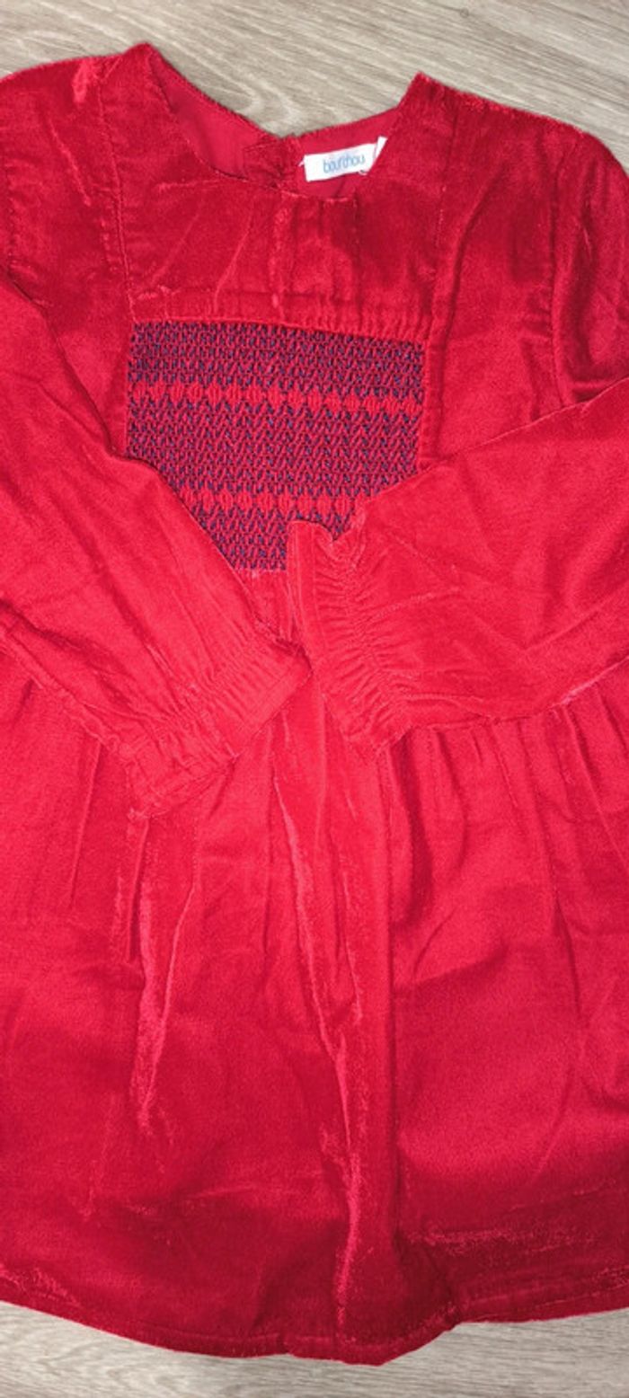 Robe bout'chou en velours rouge en parfait état quasiment neuf taille 18 mois Doublure rouge Motifs bleus