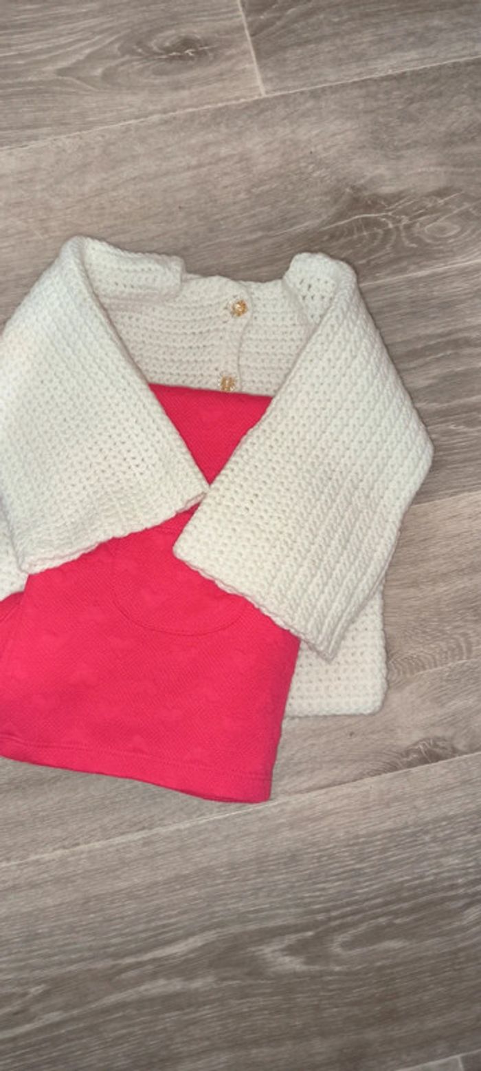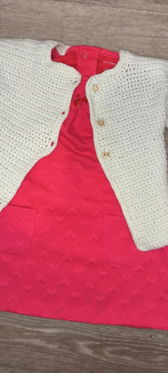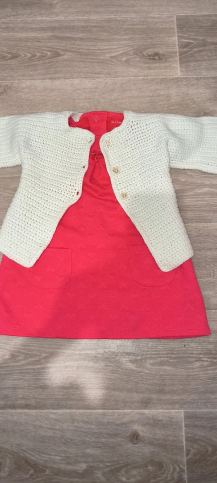 Très beau ensemble fille 24 mois Parfait état Robe pat&ripaton Gilet maille fait main maille de qualité