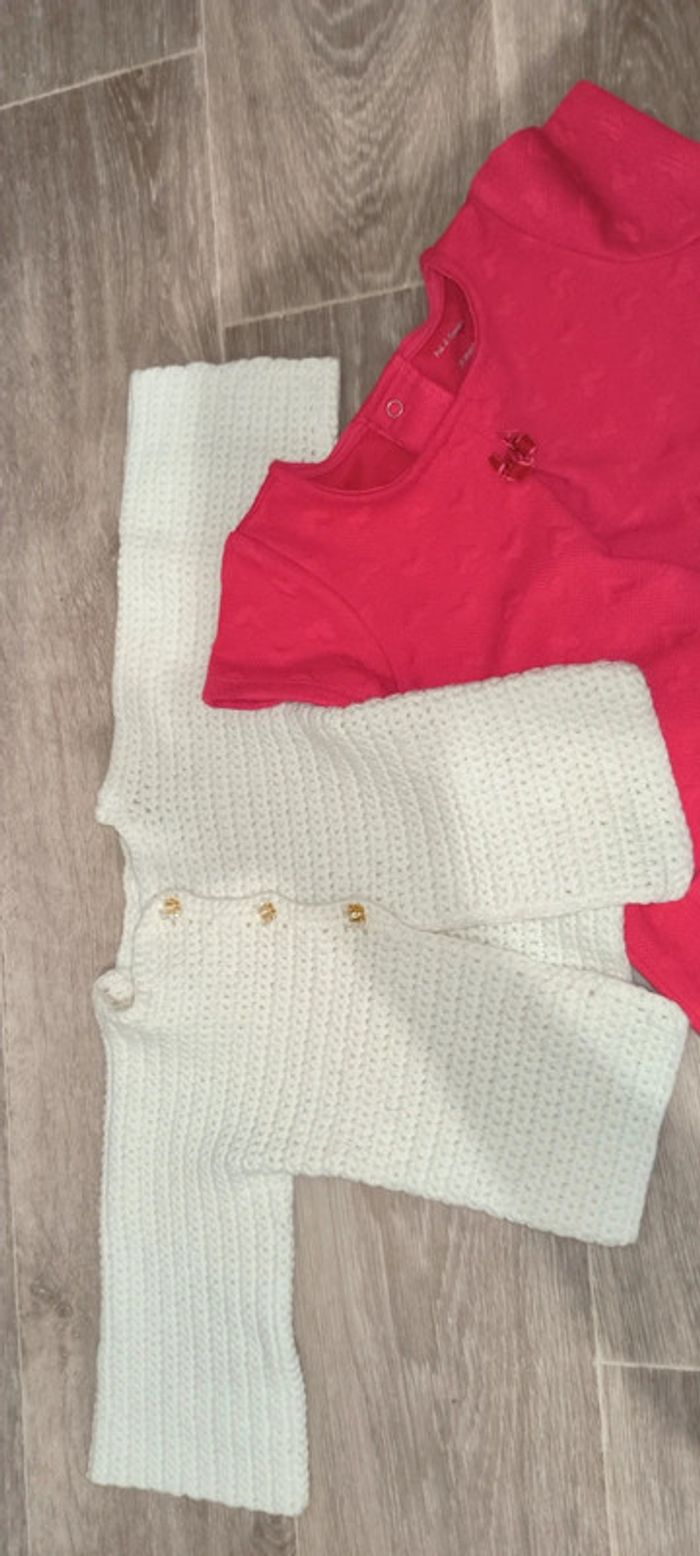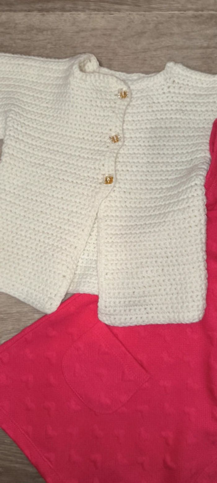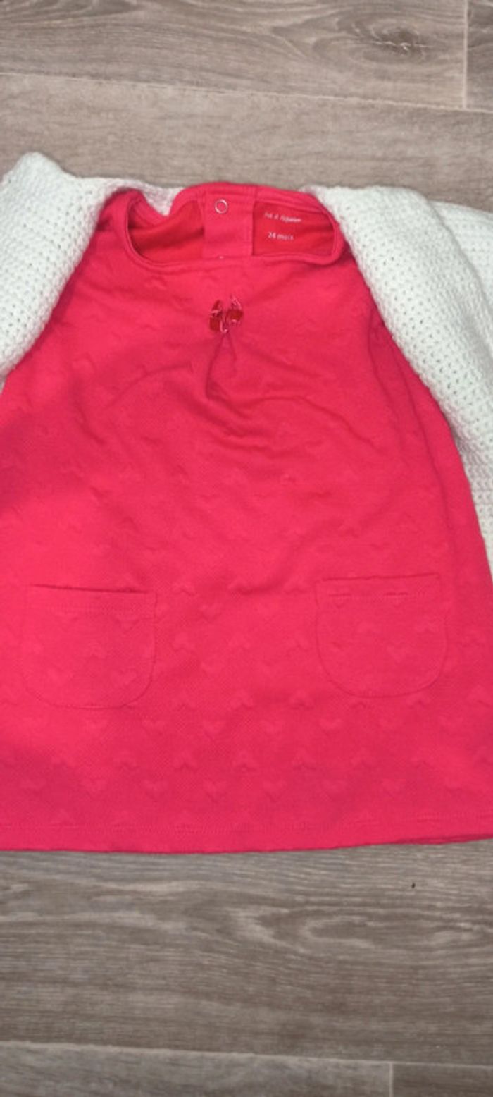 Très beau ensemble fille 24 mois Parfait état Robe pat&ripaton Gilet maille fait main maille de qualité