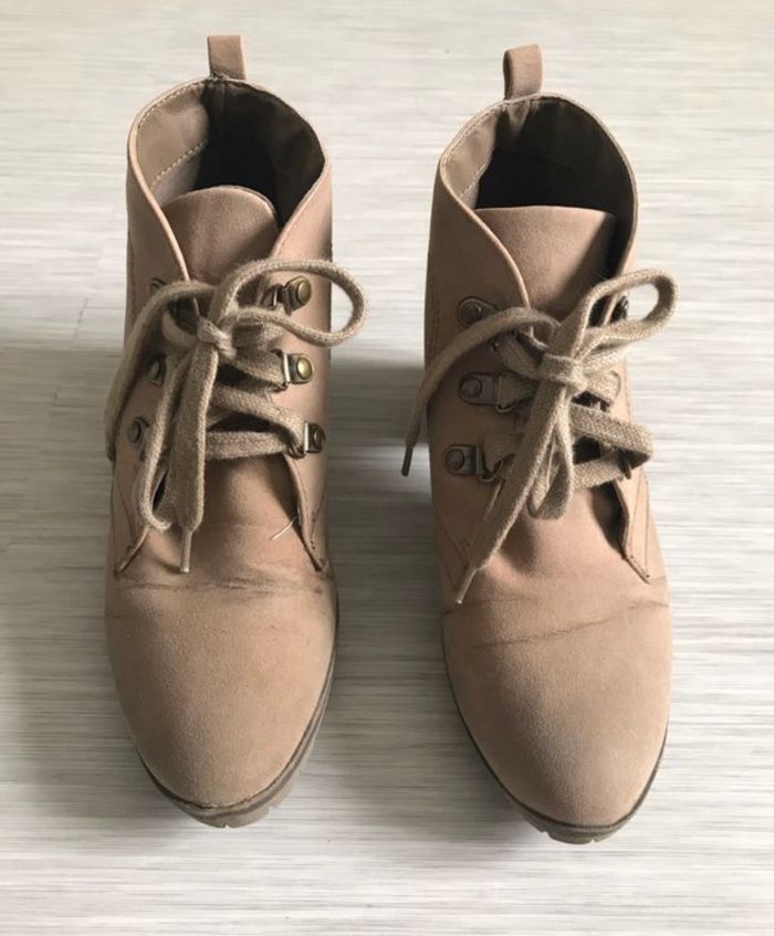 bottines beige CASUAL en daim synthétique pointure 37 talons de 6,5 cm Bon état général