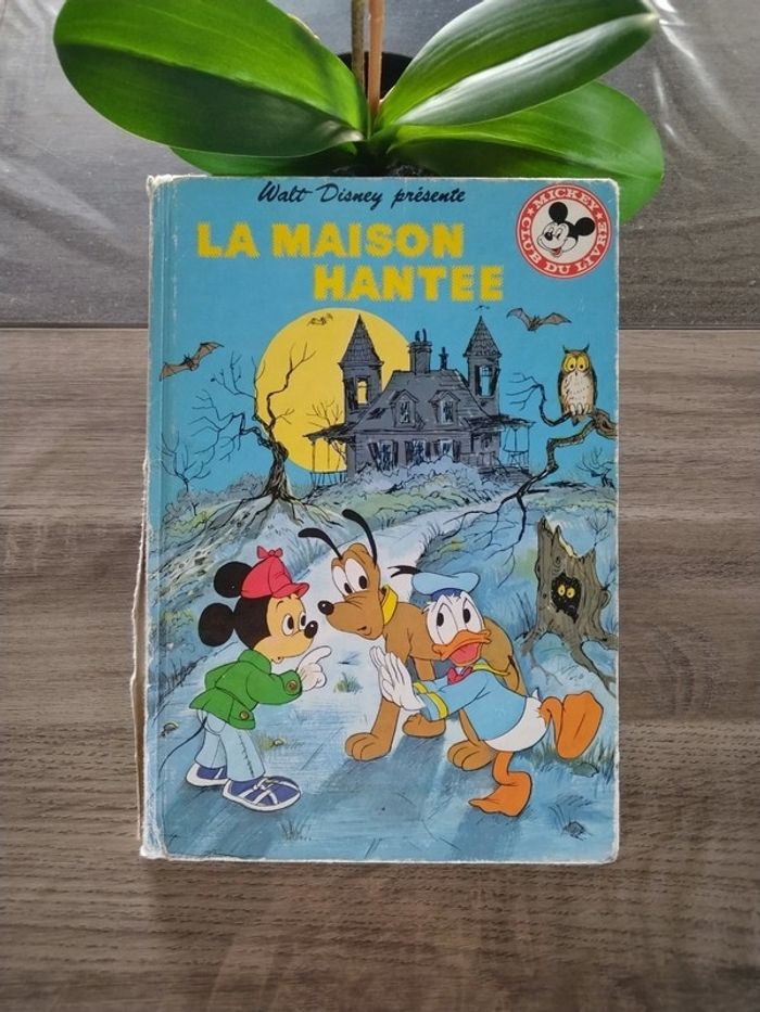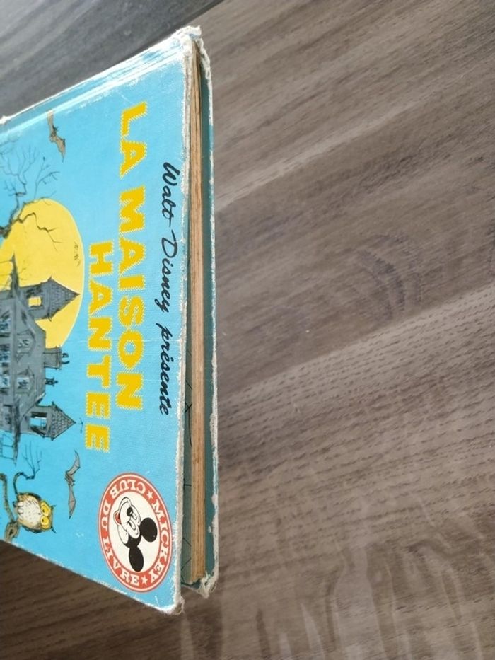 Livre Walt Disney présente "La maison hantée" Walt Disney Company Édition Hachette Collections Coins et arrêtes abîmés, tranche du livre qui est décollée, pages jaunies et gondolées, marque d'eau sur la 4ème de couverture État satisfaisant #evelyne_livres