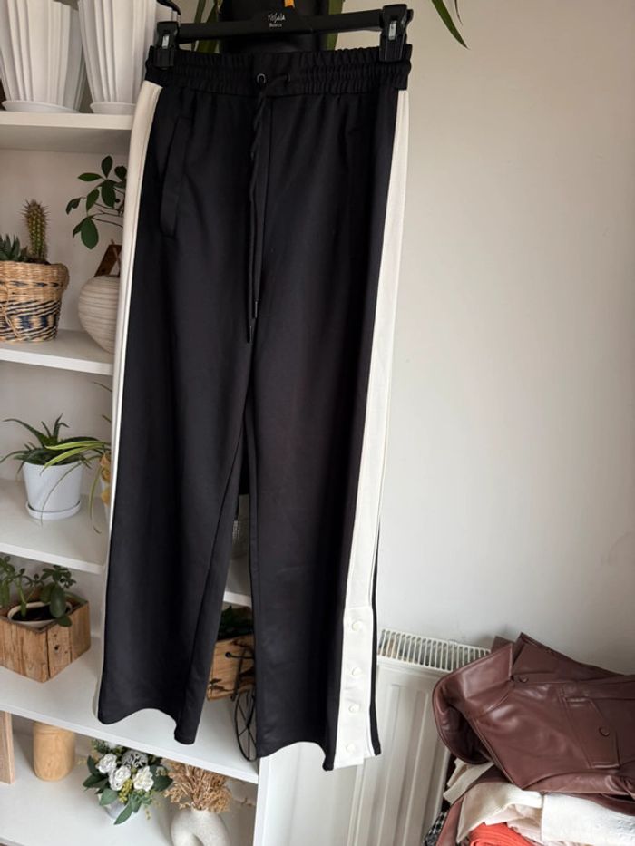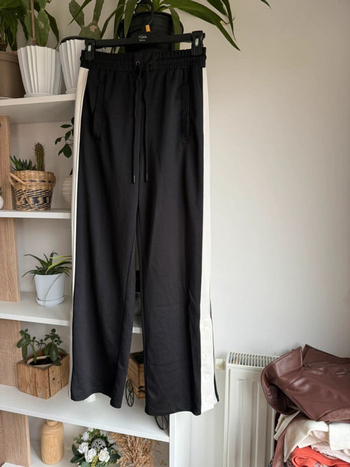 Pantalon noir à bandes blanches Le bas peut s ouvrir