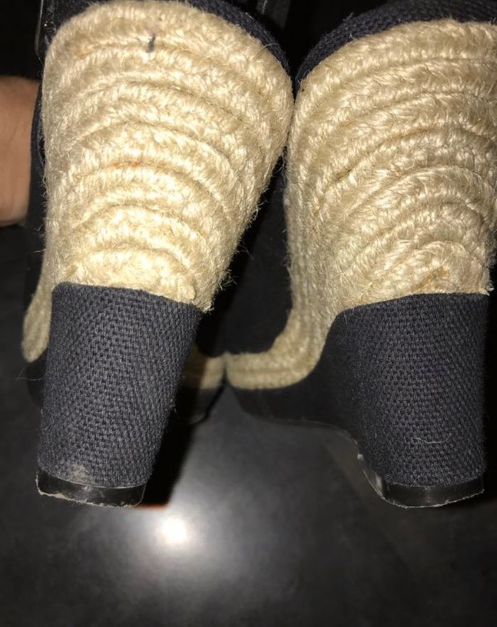 Nu pieds talons compensés 37 New Look superbe nu pieds en toile noire et corde, talons 10,5 et semelle 3 cm.   Quasiment neuf. - photo numéro 3