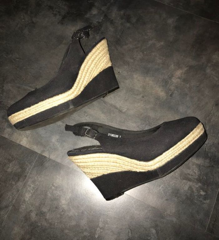 Nu pieds talons compensés 37 New Look superbe nu pieds en toile noire et corde, talons 10,5 et semelle 3 cm.   Quasiment neuf. - photo numéro 2