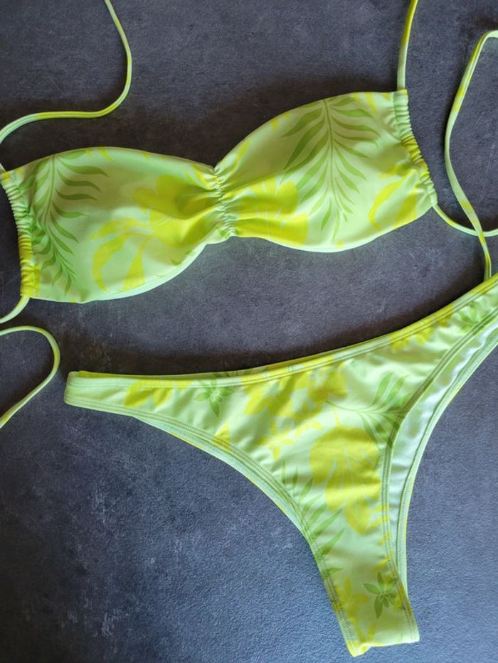 Maillot de bain 2pieces Tropical Vert/jaune Neuf sans étiquette Jamais porte