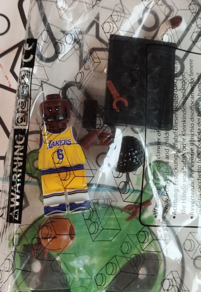 1 figurine type Lego basket NBA : numéro 6 LeBron James Los Angeles Lakers Neuve sous emballage non ouverte non assemblée Figurine compatible Lego (pas la marque Lego mais s'adapte aux Legos sans problème) Figurine + ballon + socle J'ai d'autres joueurs de basket en Lego comme Dwyane wade Michael Jordan LeBron James Shaquille o'neal Kobe Bryant etc regardez mon dressing personaje lego - lego personaggio - lego karakter Parfait pour cadeau de Noël sympa ou surprise de calendrier de l'Avent - Weihnachtsgeschenk oder Adventskalender - Regalo de Navidad o calendario de adviento - Regalo di Natale o calendario dell'avvento - Kerstcadeau of adventskalender J'ai également d'autres Legos comme le monde de Mario nintendo et du basketball NBA