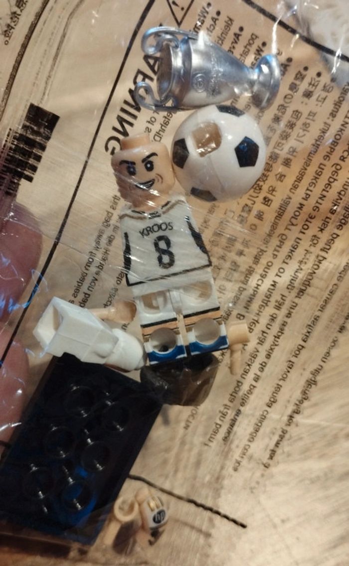 J'ai d'autres joueurs de foot en Lego comme Messi Haaland Ronaldo CR7 Mbappé Pelé Neymar Maradona De Bruyne Benzema Ronaldinho Kaka Beckham Ibrahimovic Modric Courtois van dijk Zidane Ramos (psg Barcelone madrid Manchester Milan Liverpool bresil Argentine France Belgique Suède pays bas Croatie Portugal Miami Al Hilal Al ittihad Al Nasr) regardez mon dressing et n'hésitez pas a me demander si vous ne voyez pas