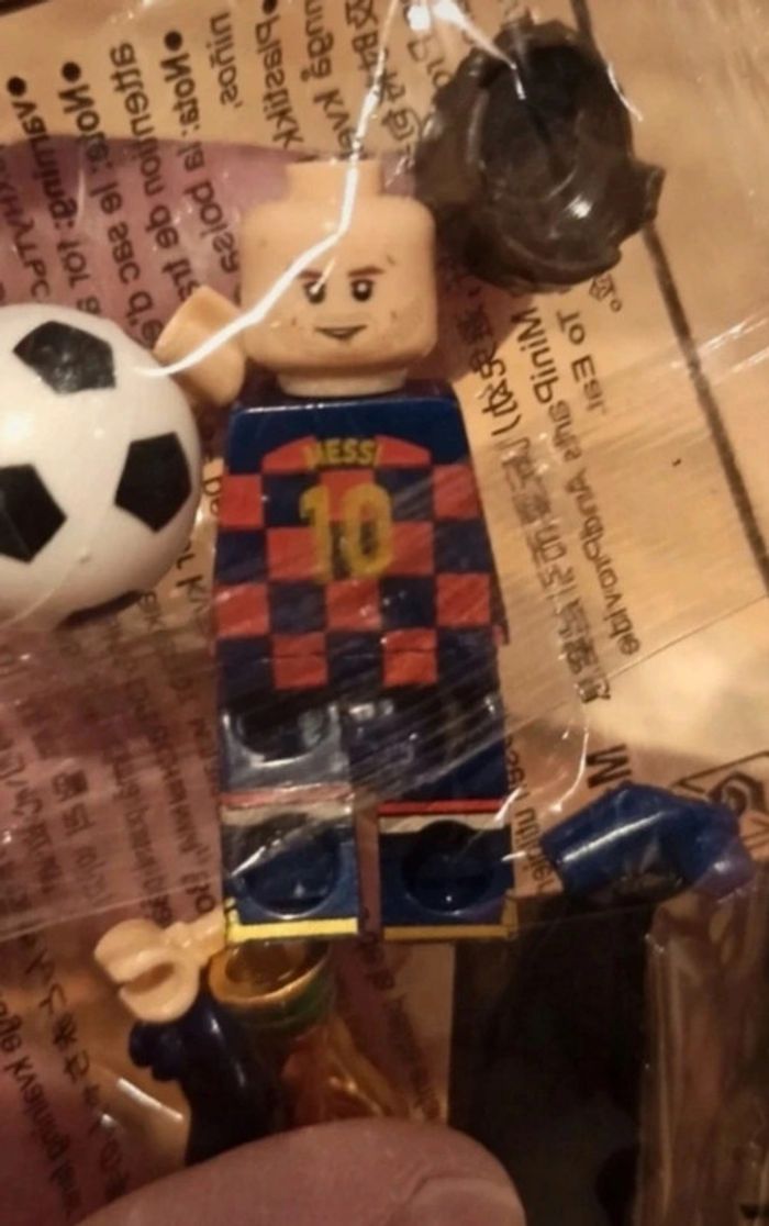 Personnage type Lego football neuf Lionel Messi équipe FC Barcelone maillot a Damiers