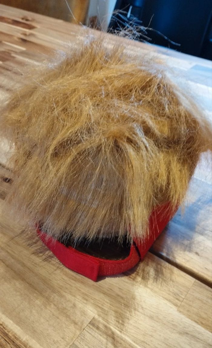 Neuve emballée Couleur rouge Casquette visiere Donald Trump 2024 avec fausse moumoute rousse sur le dessus 🤣 Taille Réglable à l'arrière Amis rednecks, patriotes, fêtards à la recherche d'un super déguisement, personnes un peu suicidaires ou ne sachant quoi faire de votre porte monnaie vinted cette casquette est pour vous! J'ai aussi la même en noir et également la casquette Trump MAGA rouge et noire