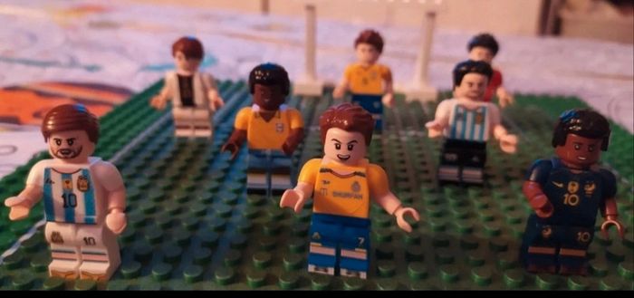 Neuf Sous blister emballage Ensemble de 8 joueurs de foot + 1 ballon + 1 demi terrain + 1 but type Lego Ce ne sont pas la marque Lego mais est 100% compatible avec Lego et autres briques But à construire Joueurs : Cr7 Al nasr, Mbappé France, Messi argentine, Maradona argentine, Pelé Brésil, Virgil van Dijk Liverpool, Casemiro Brésil, Thomas Muller Allemagne J'ai d'autres figurines type Lego compatibles (foot haaland ronaldo Messi Mbappé neymar etc) (basket Michael Jordan stephen curry kobe bryant Shaquille O'Neal lebron James etc) regardez mon dressing personaje lego - lego personaggio - lego karakter Parfait pour cadeau de Noël sympa ou surprise de calendrier de l'Avent - Weihnachtsgeschenk oder Adventskalender - Regalo de Navidad o calendario de adviento - Regalo di Natale o calendario dell'avvento - Kerstcadeau of adventskalender J'ai également d'autres Legos comme le monde de Mario nintendo et du basketball NBA