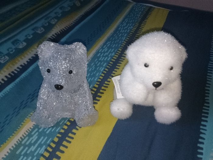 Lot ours polaire 1 lumineux environ 16cm 20 euro 1 blanc environ 18cm 12 euro un peu taché