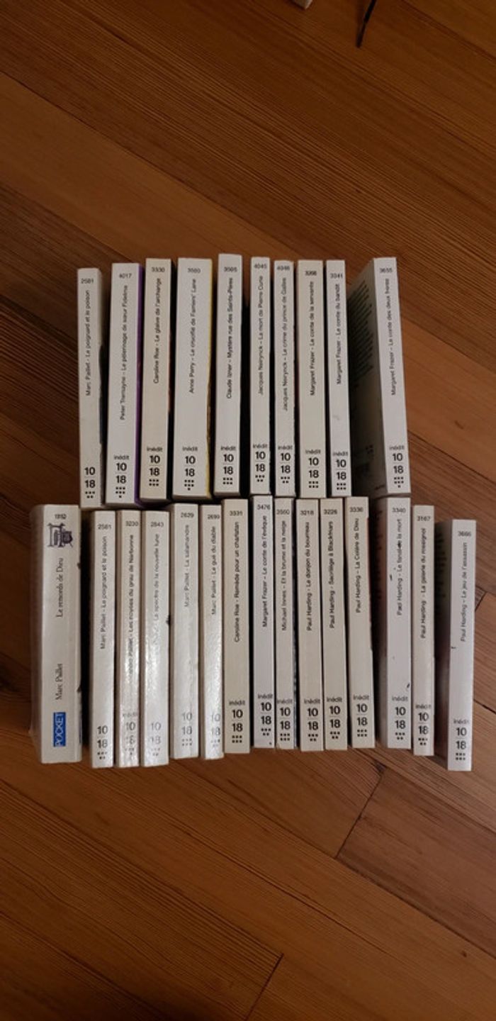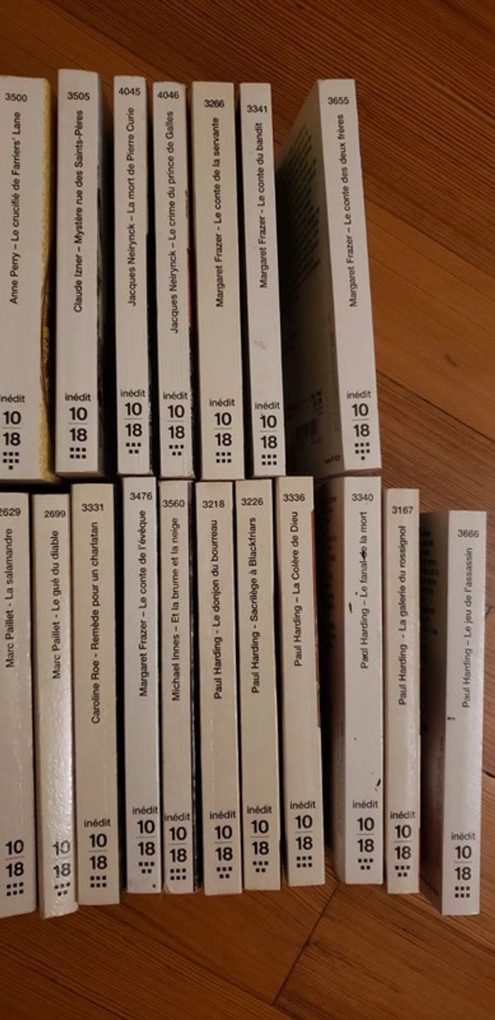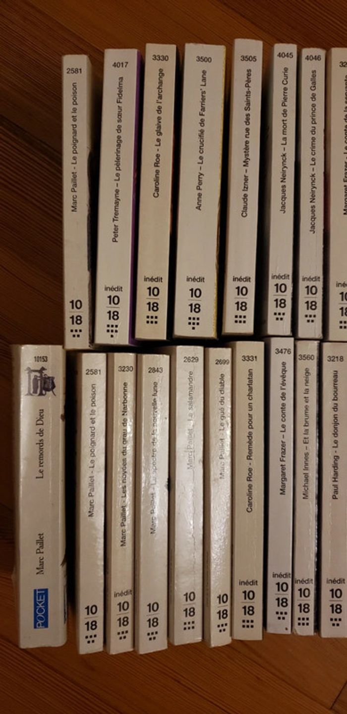 Lot de 25 livres. Collection Grands Détectives. Différents auteurs : Marc Paillet, Paul Harding, Margaret Frazer, Caroline Roe. Un titre en double : le poignard et le poison. Etat des livres variable, certain en bon état, d'autres comme neuf. Prix du lot 25€. Possibilité d'achat à l'unité : 1,50€/livre.