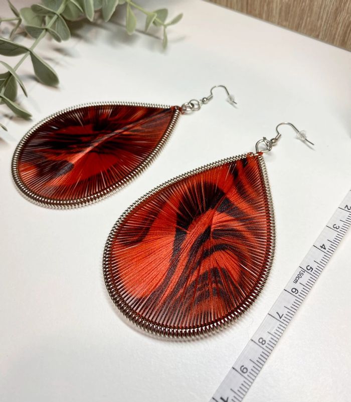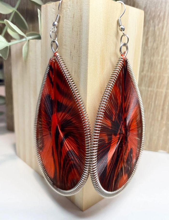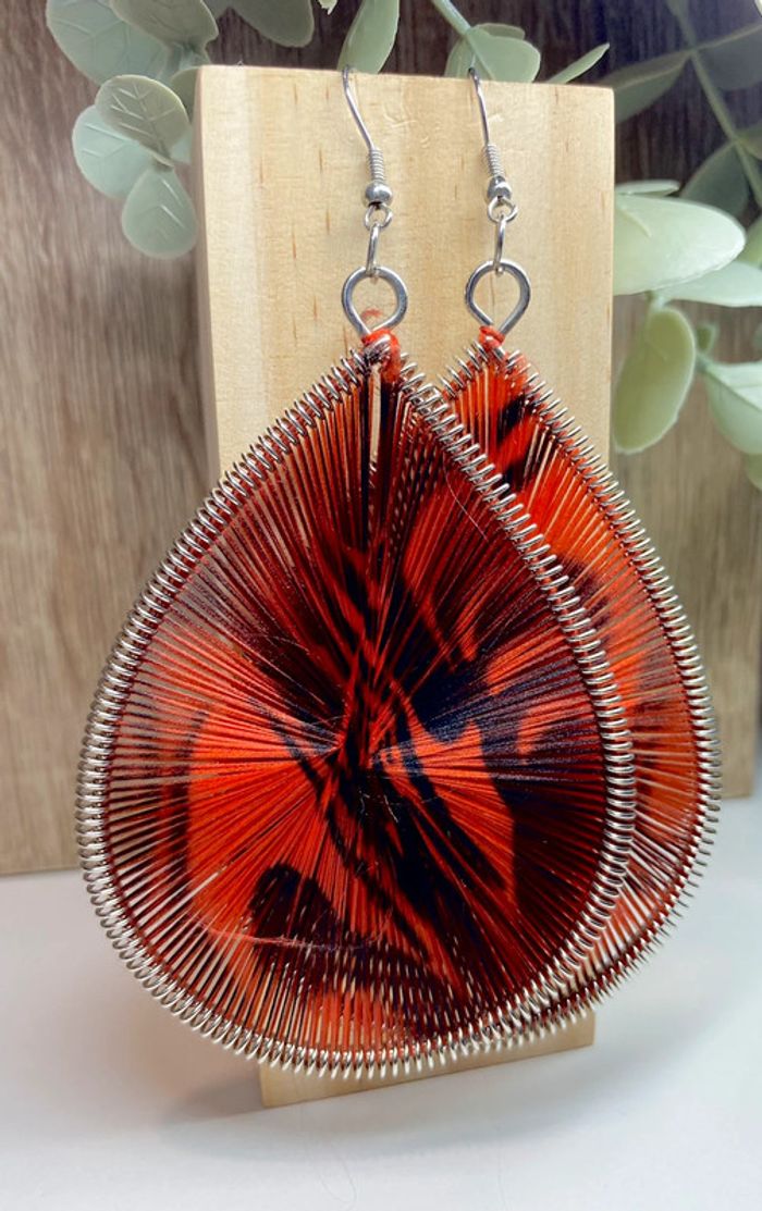 Superbes boucles d’oreilles en fils - noir et rouge - photo numéro 7
