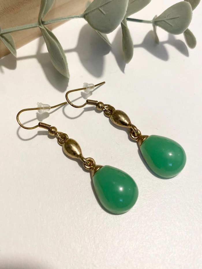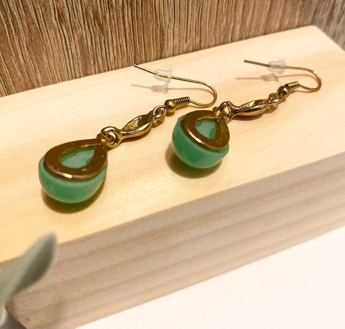Superbe boucles pierres  💚 vert émeraude et doré -  Neuves - photo numéro 5