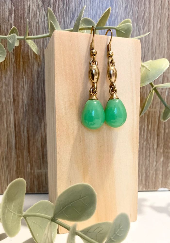 Superbe boucles pierres  💚 vert émeraude et doré -  Neuves - photo numéro 3