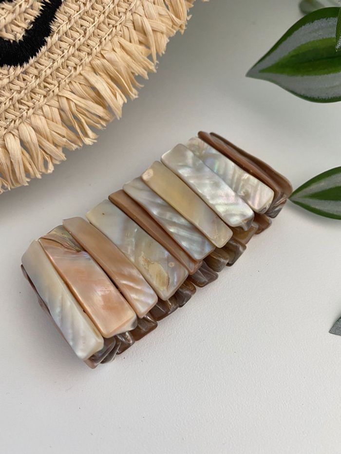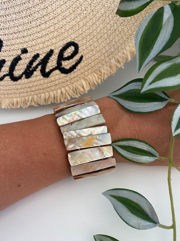 superbe bracelet couleurs beige avec de très beaux reflets 🤩 épouse parfaitement le poignet car élastique neuf jamais porté voir mesures à plat (sur photo) #gegebraceletsmode pour voir mes autres articles de la catégorie bracelet