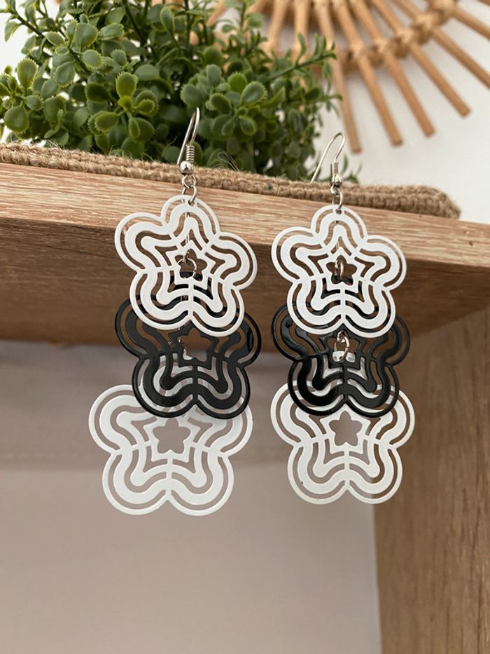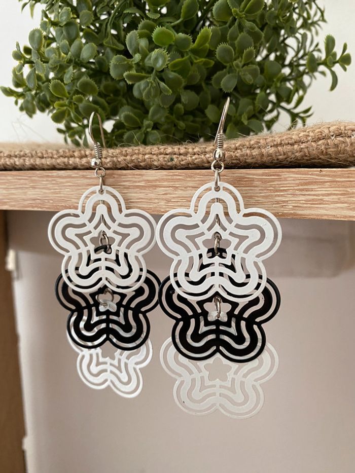 Boucles NEUVES jamais portées Forme fleurs graphiques modernes couleurs: noir blanc et argenté longueur 8 cm N’hésitez pas à faire un lot pour économiser sur les frais Vinted 👛🌎 Pour voir toutes mes boucles d’oreilles disponibles c’est par ici 👇🏼 #gegebouclesmode 📦 Envoi rapide et soigné 🏠 Non fumeur et sans animaux ✍🏻 Envoyez moi un message si vous avez des questions, je réponds dans la journée #creoles #perles #doré #argenté #bijou #chaine #anneau #goutte #plume #metal #pierre #tendance #mode #boheme #fashion #neuf #motif #forme #géométrique #cercle #ronde #chic #élégant