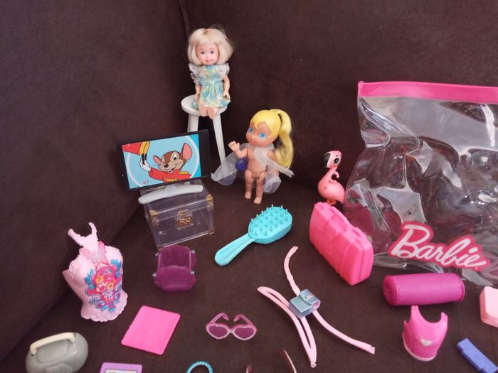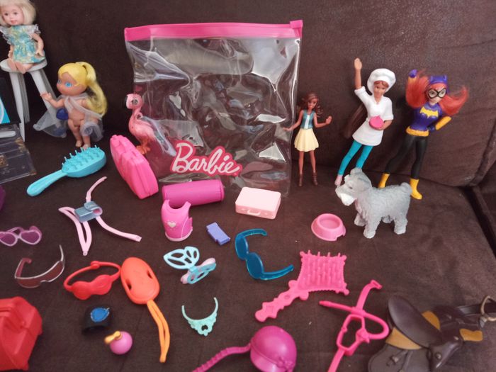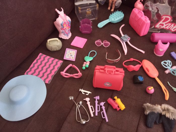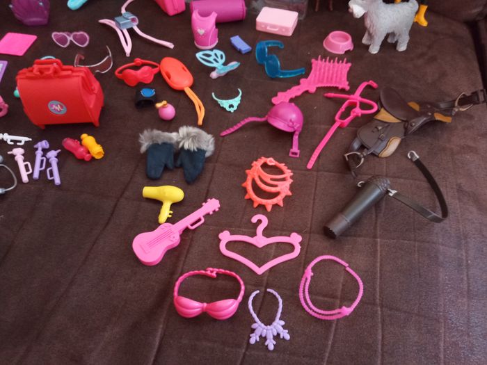 Brosses, Chien, accessoires pour faire du cheval, lunettes, colliers, mobilier, enfants, trousse médicale avec ses accessoires + plein d'autres petits accessoires