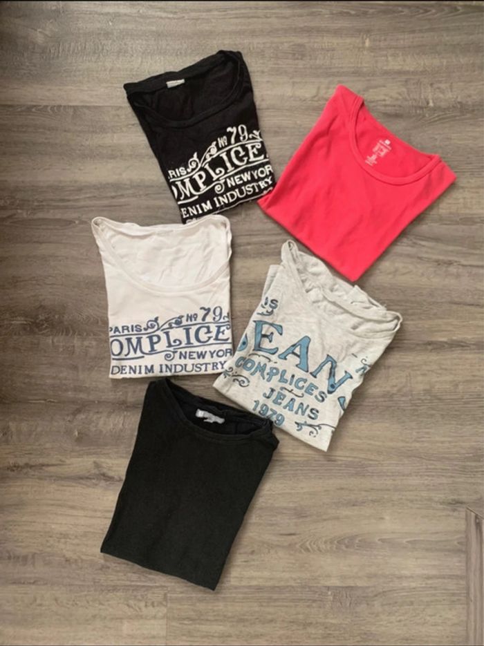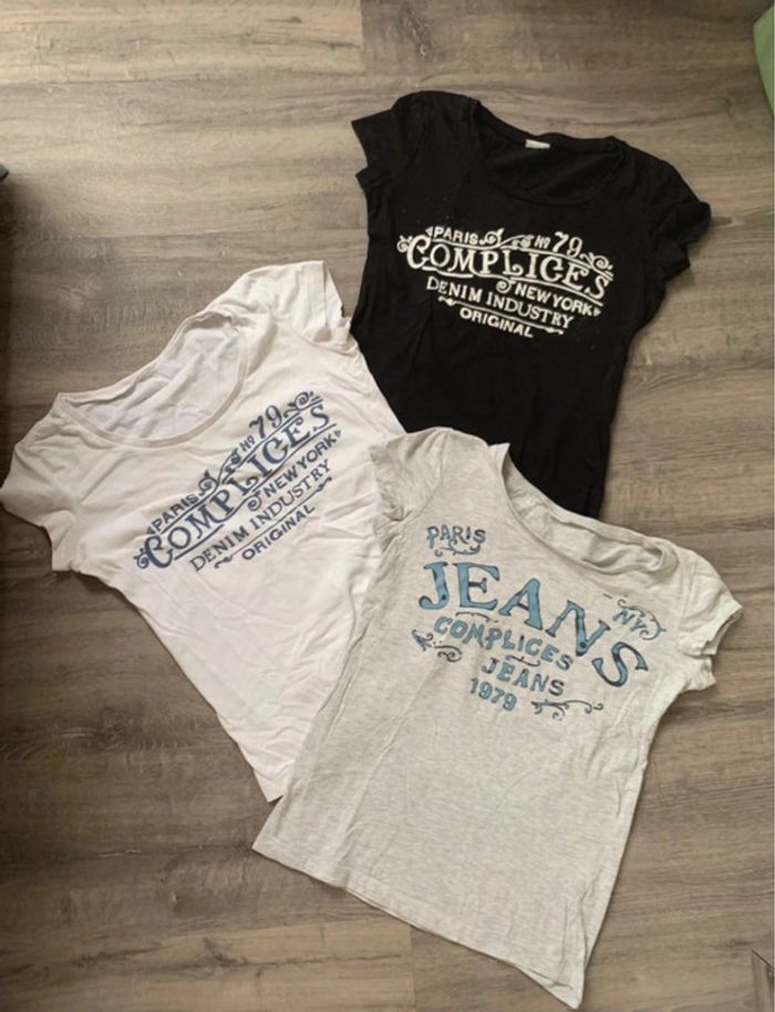 Lot de 5 tee shirts taille XS/S 3 tee shirts complices taille S 1 tee shirt domyos taille XS 1 t shirt noir u essentiel taille 0 ( les T shirts ont été portées , peuvent présenter quelques imperfections, non troués)