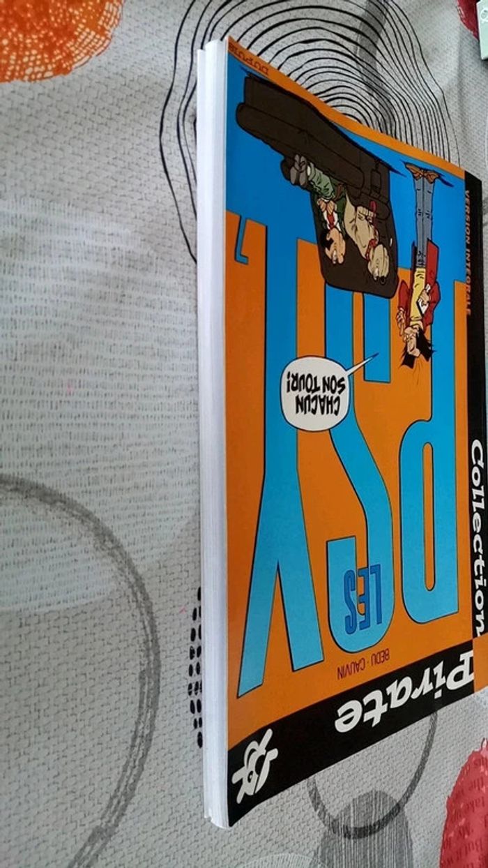 BD Collection Pirate / Les Psy Tome 7 en bon état mais la BD est légèrement pliée et la couverture à l'intérieur a quelques tâches... (voir photos 4, 5, 6 et 7)