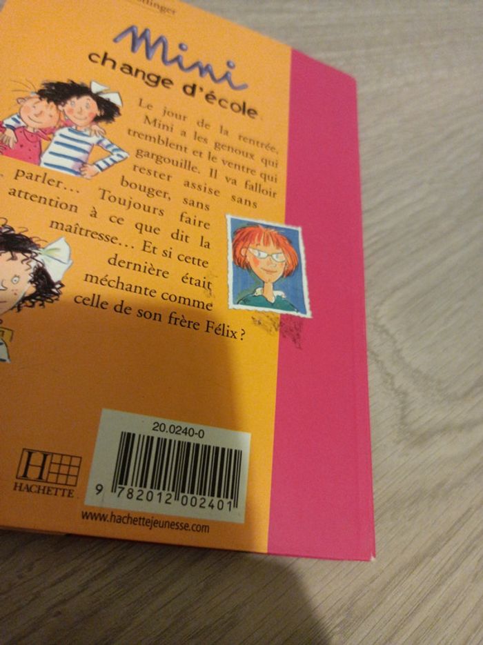 Livre La bibliothèque rose Mimi change d'école en état SATISFAISANT. En effet, la couverture du livre est légèrement abîmée, le livre comporte encore la trace du collant de l'étiquette d'achat et il y a des dessins sur les deux premières pages à l'intérieur. (Voir photos)