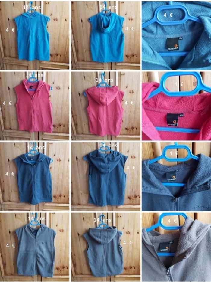 Lot de 4 polaires en 14 ans D'autres vêtements sont disponibles ainsi que d'autres tailles Possible à l'unité : 4 €