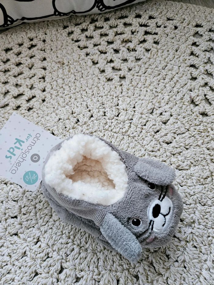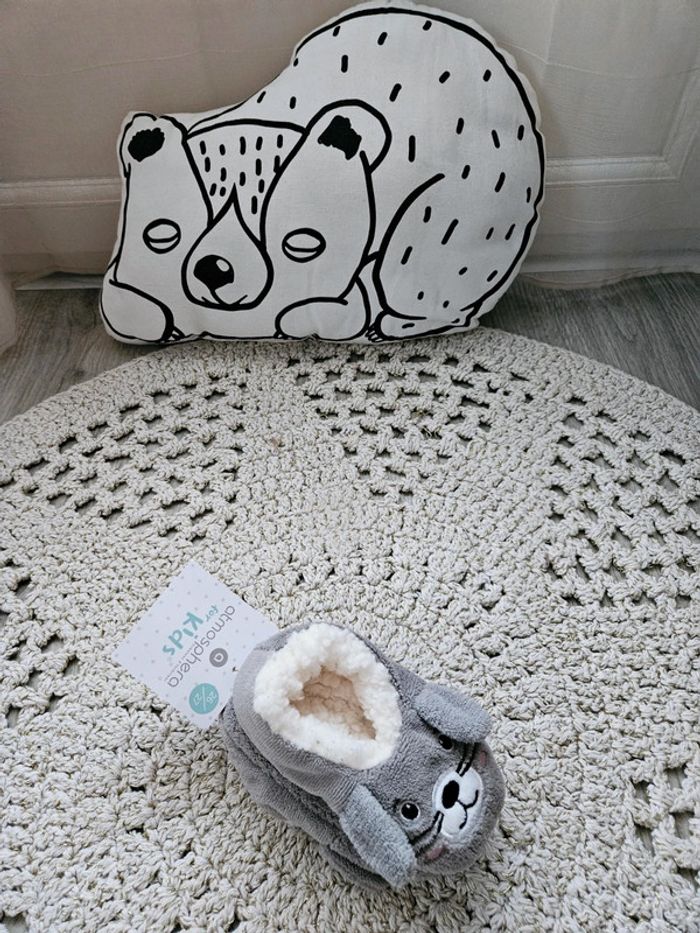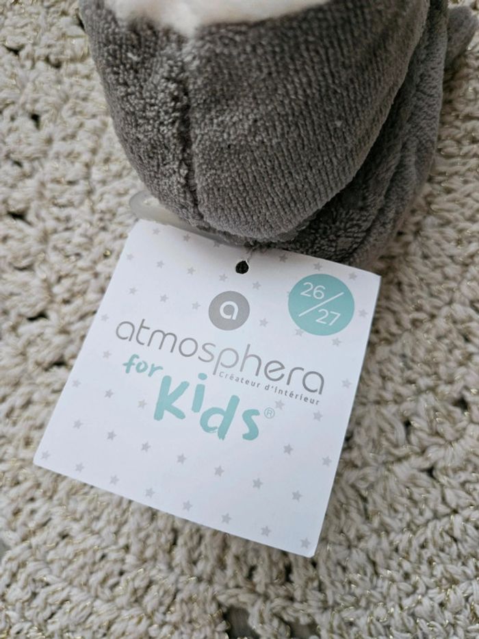 🌈 Chaussons fourrés et antidérapants, marque Atmosphera for kids. Tout à fait mixte 🫶! Pointure 26/27, je trouve qu'ils taillent petit, plutôt 24/25.
