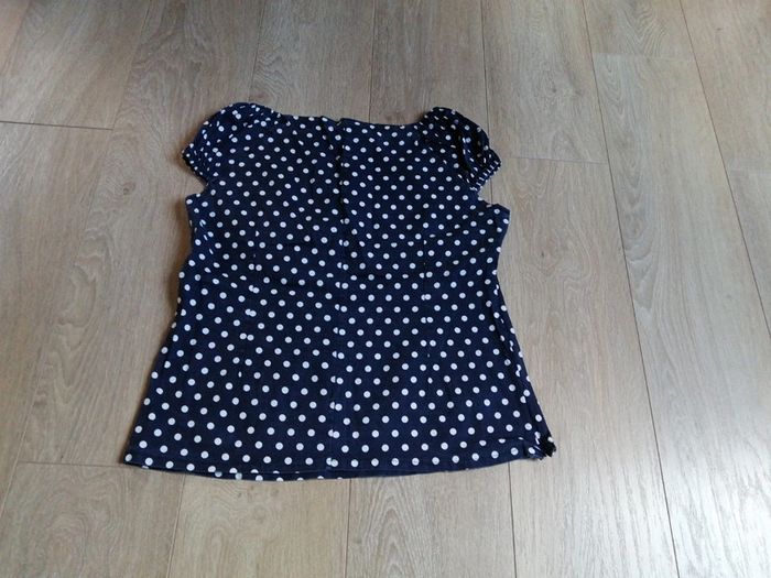 Vends petit haut vintage, cintré. Déjà porté. Taille 2 XL correspond à 42.. Aisselles à aisselles 48 cm Taille 42 cm. Bleu délavé.
