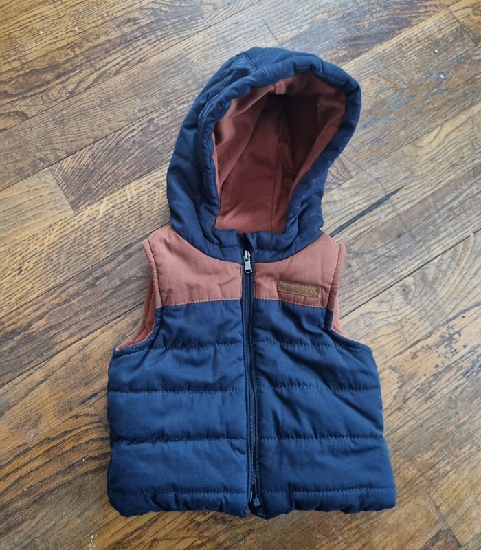 Doudoune sans manche avec capuche couleur bleu marine et marron kiabi taille 3 mois très bon etat #doudoune #doudounekiabi #doudounebebe #doudounesansmanche #doudoune3mois #3moisgarcon #kiabi3mois