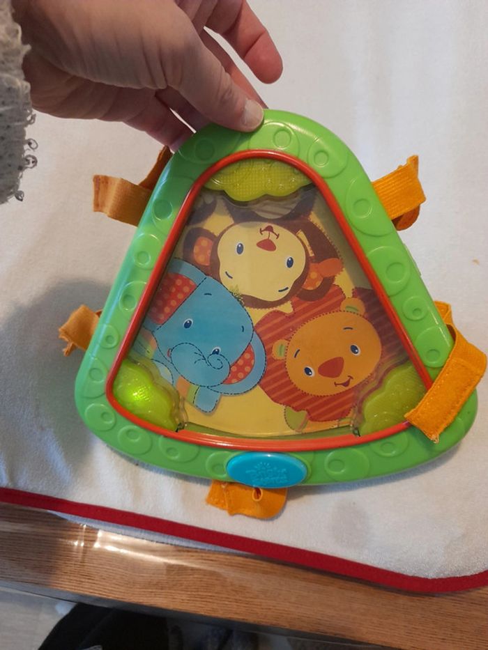 Boîte qui se fixait sur les arches d un tapis d éveil que je n ai plus. Peut se fixer sur un parc,lit,.... musique douce et logement lumineux. #jeuxcali91300