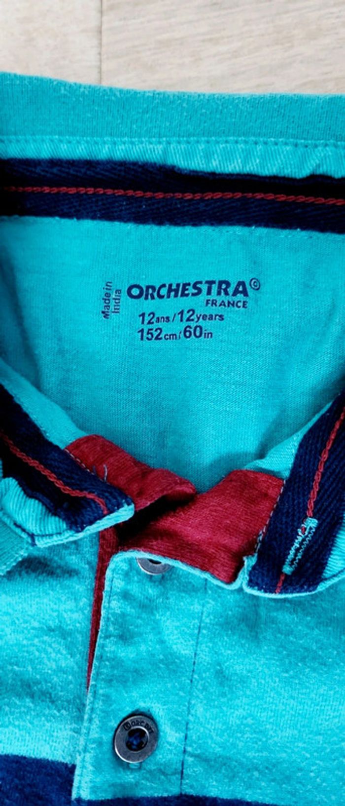Polo manches longues garçon turquoise bleu marine et gris taille 12 ans Orchestra - photo numéro 1
