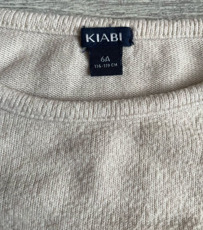 Pull fin de la marque Kiabi Taille 6 ans Couleur beige Présence de petites bouloches Occasion, bon état