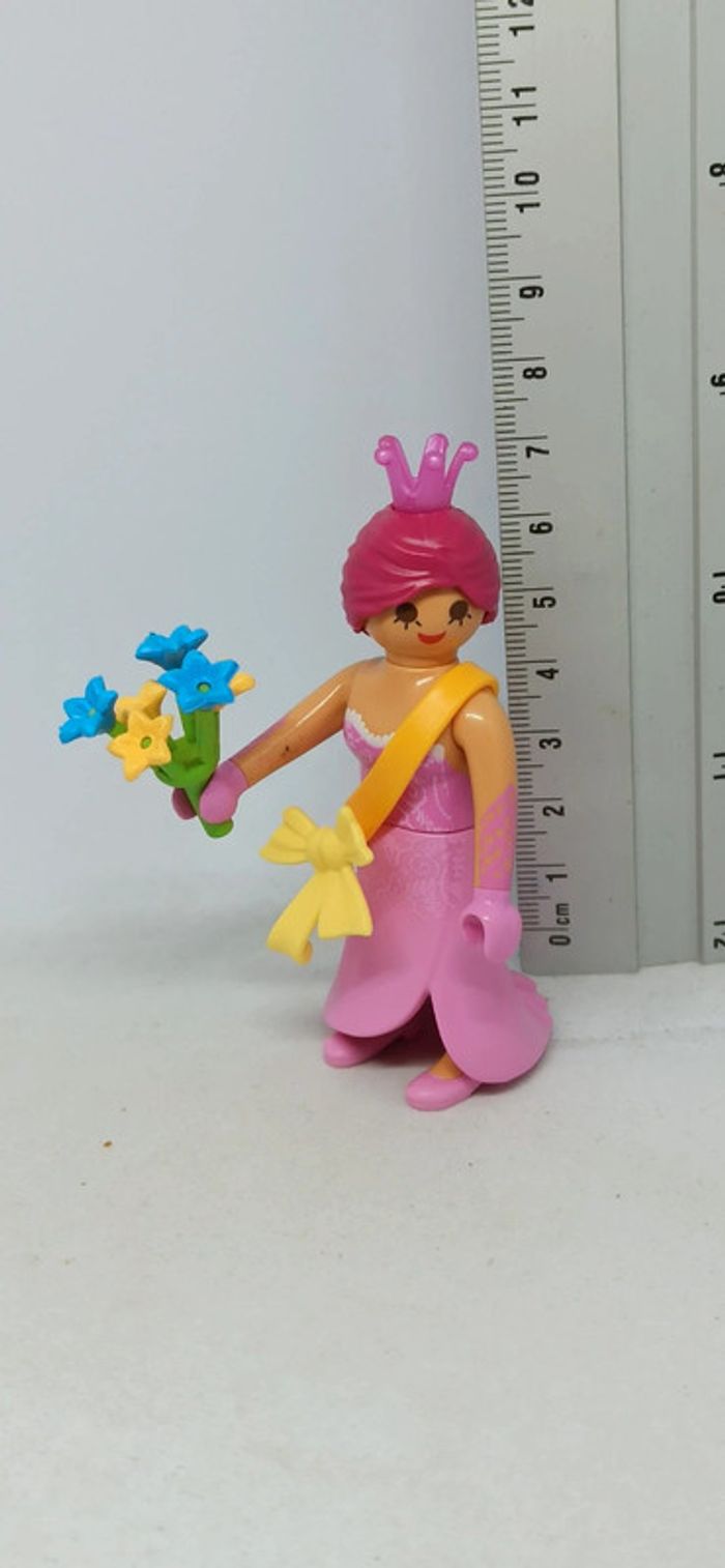 Femme miss en robe rose avec bouquet de fleurs playmobil - photo numéro 1
