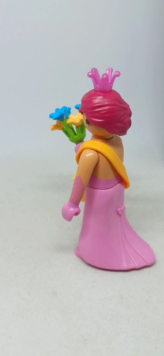 Femme miss en robe rose avec bouquet de fleurs playmobil - photo numéro 3