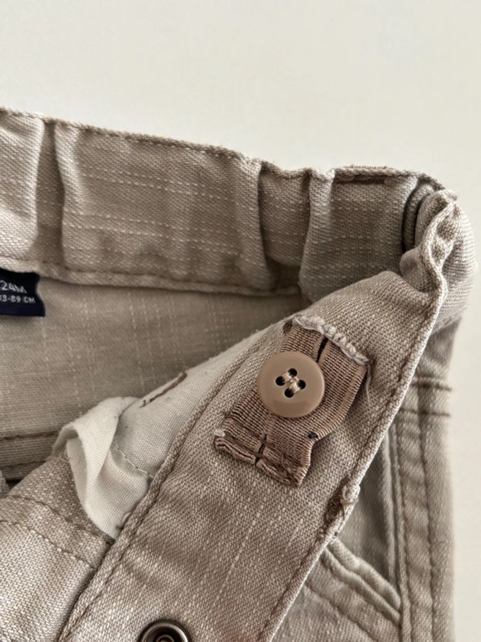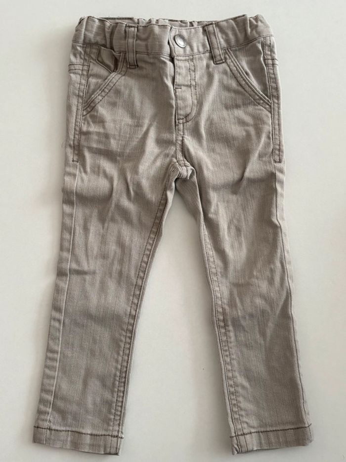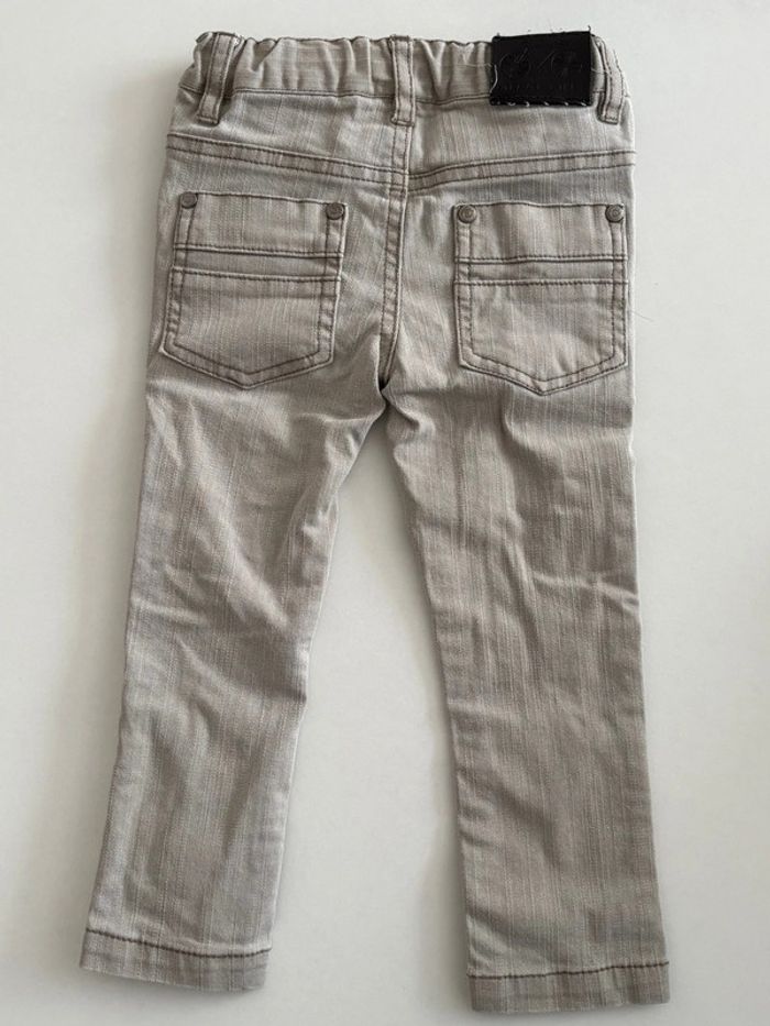 Jean gris Kiabi 24mois 83/89cm en très bon état. Réglable par boutons et élastiques (photos 4 et 5). Le seul petit défaut de ce jean se trouve à l’arrière (voir dernière photo) : des fils ressortent mais ne gêne en rien, c’est seulement esthétique.
