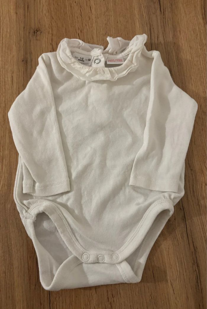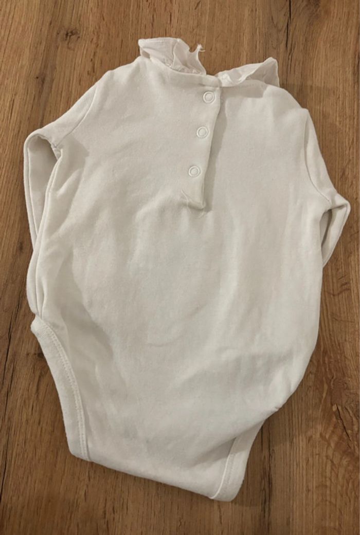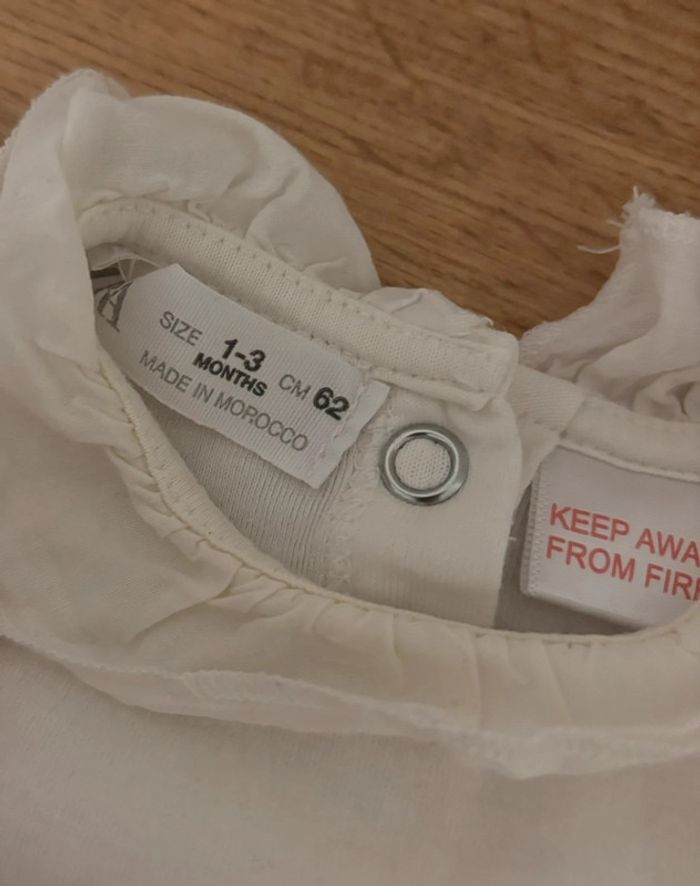 🏷️ Body Zara 🤍 🦢 — Taille 1-3mois / 62cm 🦢 — Joli body blanc avec col, porté pas mal de fois, en bon état. 🤍 ⚠️ — Petit défaut (voir photo 4), de plus, le body n’est plus blanc blanc, et est bouloché dû aux lavages fréquents car il a été beaucoup porté. Ce qui explique le très faible prix pour un body Zara.