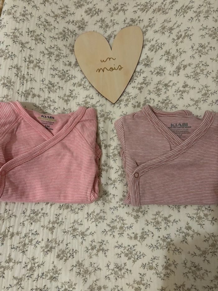 🏷️ 2 bodies Kiabi 🩷 Taille 1mois / 52-55cm | 4kg Lot de 2 bodies Kiabi, en très bon état. Très peu portés.