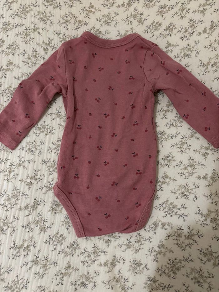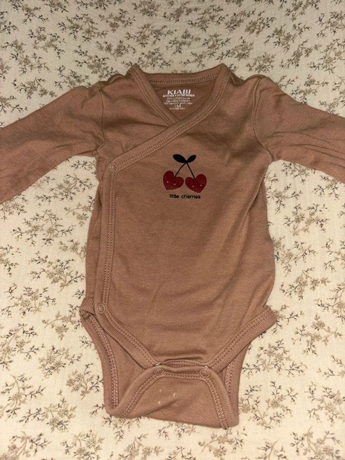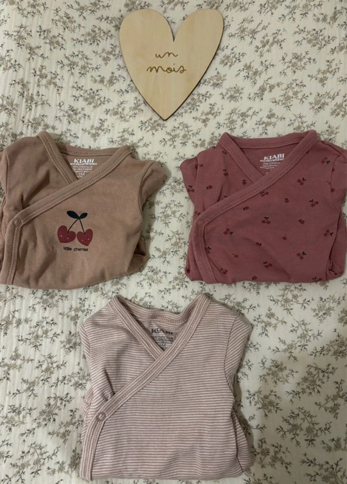 🏷️ 3 bodies manches longues Kiabi 🍒 Taille 1mois / 52-55cm | 4kg 3 jolis bodies de la marque Kiabi, 2 avec motifs cerises, et un à rayures blanches et marrons clairs. 🤍 Défauts sur un body (body offert, c’est pourquoi le lot de 3 est à 2,50€) (voir photos 3 et 4) : marques d’épingle quand le body était étendu, ainsi que quelques micro taches près des 2 grandes cerises (je ne sais pas à quoi c’est dû). Malgré ça, le body est en très bon état. Portés très peu de fois. 🤍