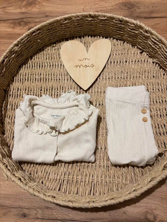 Ensemble Vertbaudet 🤍 Taille 1mois / 54cm Ensemble très mignon, boutons pression sur tout le devant du petit haut pour plus de facilité lors de l’habillage de bébé, 2 petits boutons en bois sur le legging 🤍 Porté quelques fois, en très bon état! 🤍 #ensemble #Vertbaudet #1mois #tresbonetat #tbe