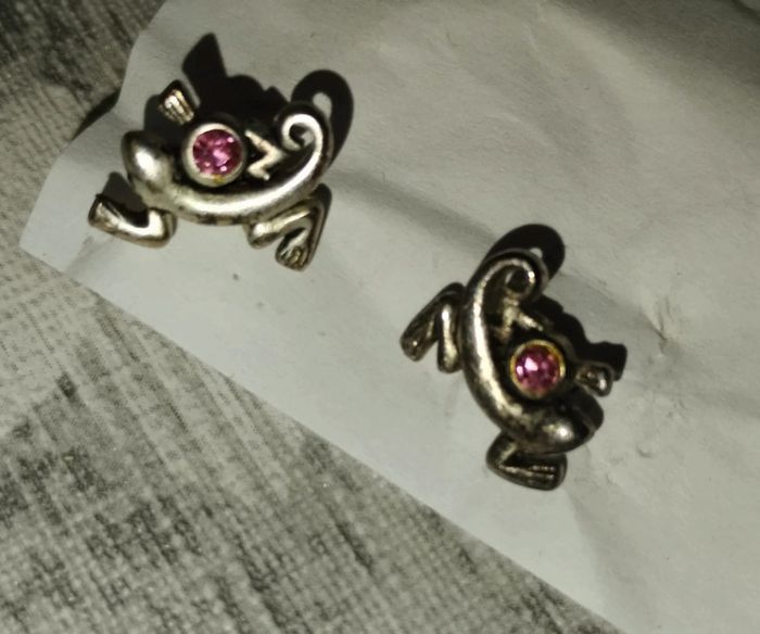 Boucles d'oreilles lézard avec petite pierre rose. Très bon état