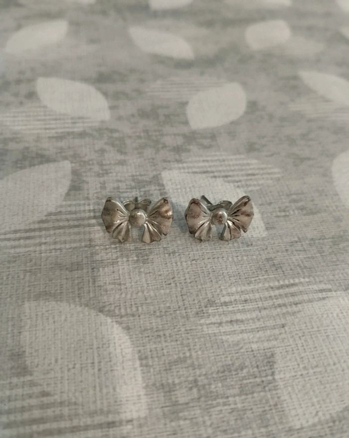 Boucles d'oreilles petits noeuds argentés. Très bon état
