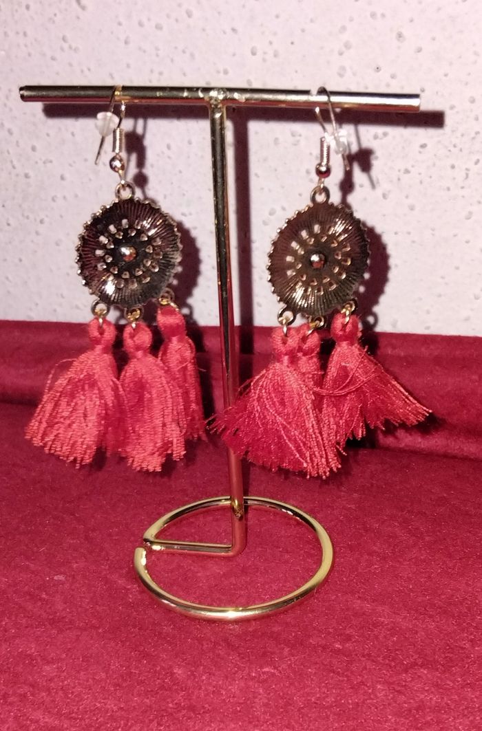 Paire de boucles d oreilles attrape rêve rouge et doré  neuf