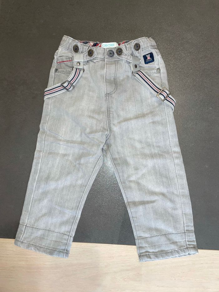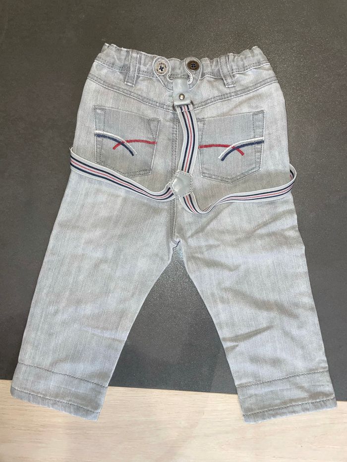 Jean a bretelles obaibi gris taille 18 mois très bon état