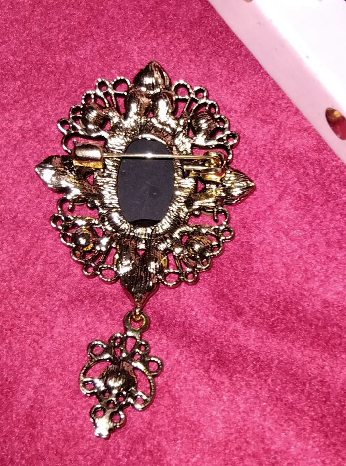 Broche camé bleu et doré- pierres  bleues et jaune - photo numéro 2