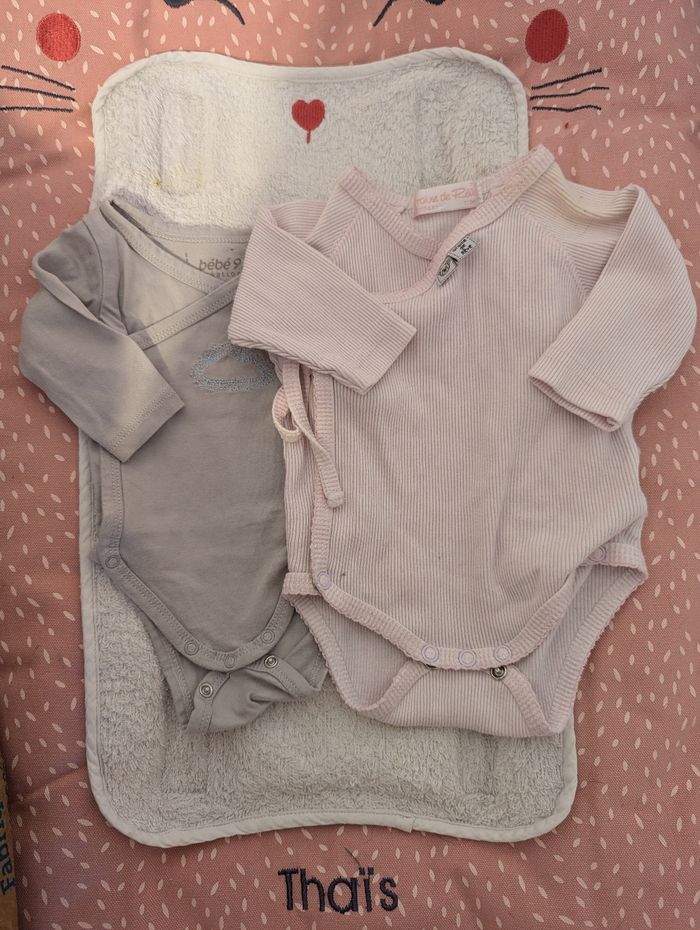 🙊 bodies fille 🙊 1 mois 🙊 Le gris a un petit trou et le rose est tâcher (voir photo)