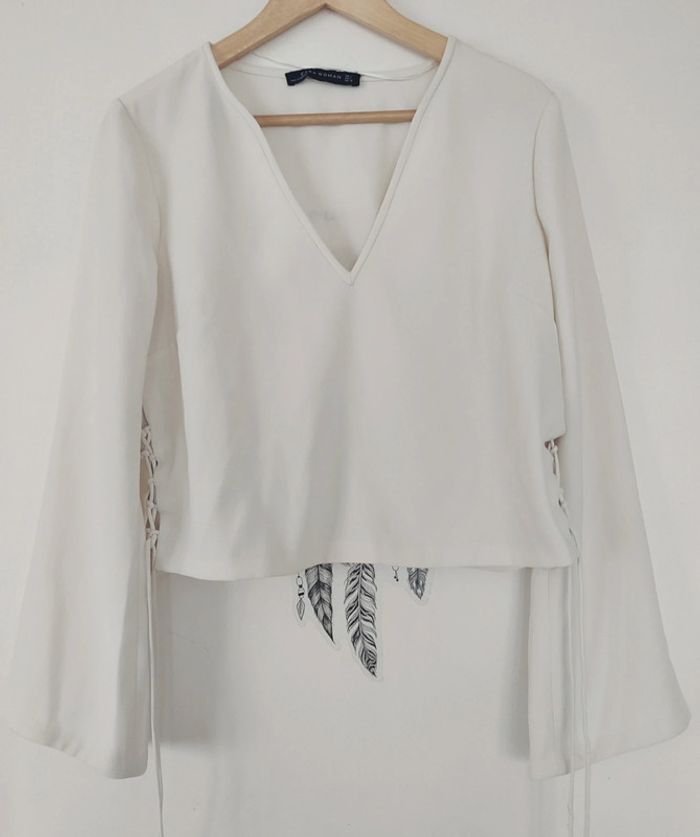 ✓ Top manches longues blanc Zara ✓ taille L ✓ col V ✓ Laçage de chaque côté au niveau du ventre ✓ Défaut discret au niveau des fils ( photo ) Pour faire des lots (réductions activés) #shadowstonemL