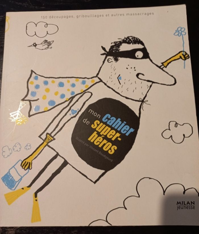 Livre mon cahier de super héros, en bon état, 150 découpages, gribouillages et autres massacrages, Milan jeunesse, pour enfant 0 à 5 ans.