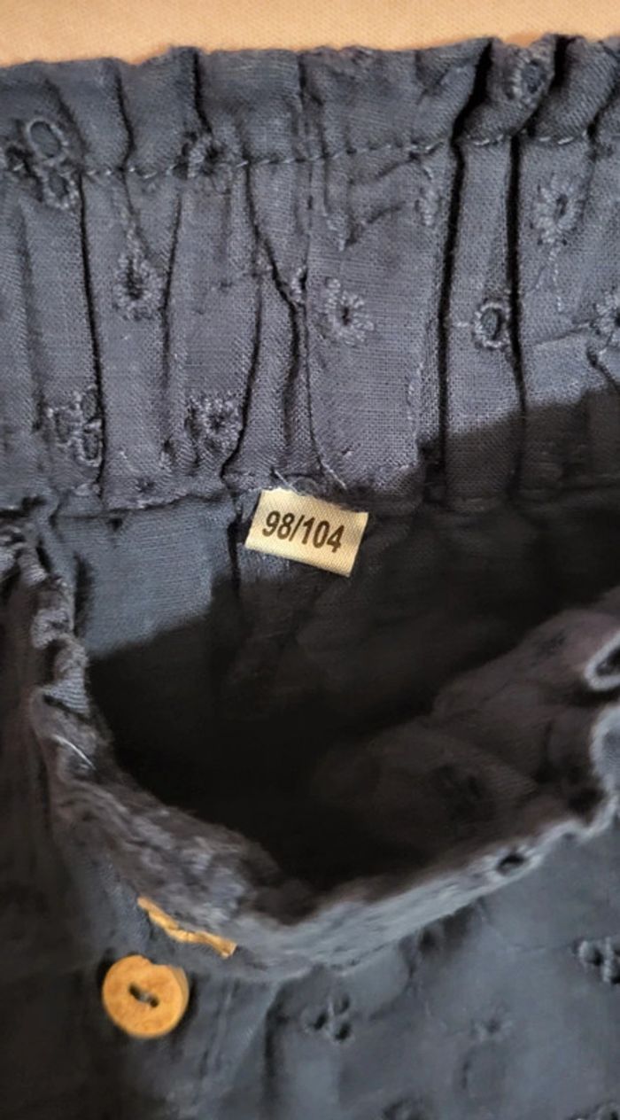Haut jaune pâle, vertbaudet 5 ans Bas en broderie de couleur bleu marine, sans marque taille 98-104 cm En TBE, maison non fumeurs